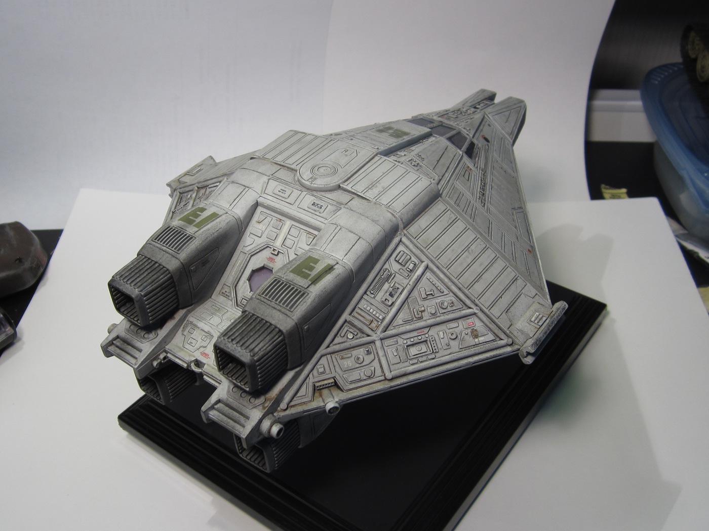 I added a few “greeble” here and there (especially on the exposed “machine” area) and detailed the interior (we don’t see it much through the dark windows of the cockpit, but it is better than the over-simplistic original cockpit.)