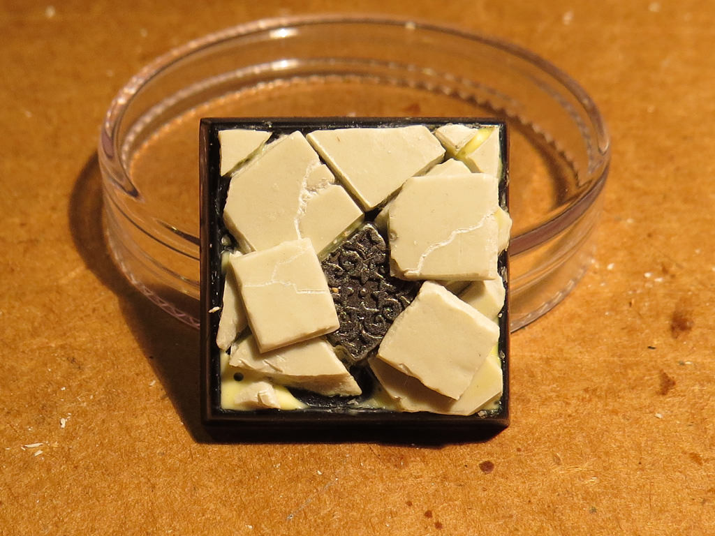 4- With the X-acto, dull the sharp angles of the little squares and create some cracks and dents.