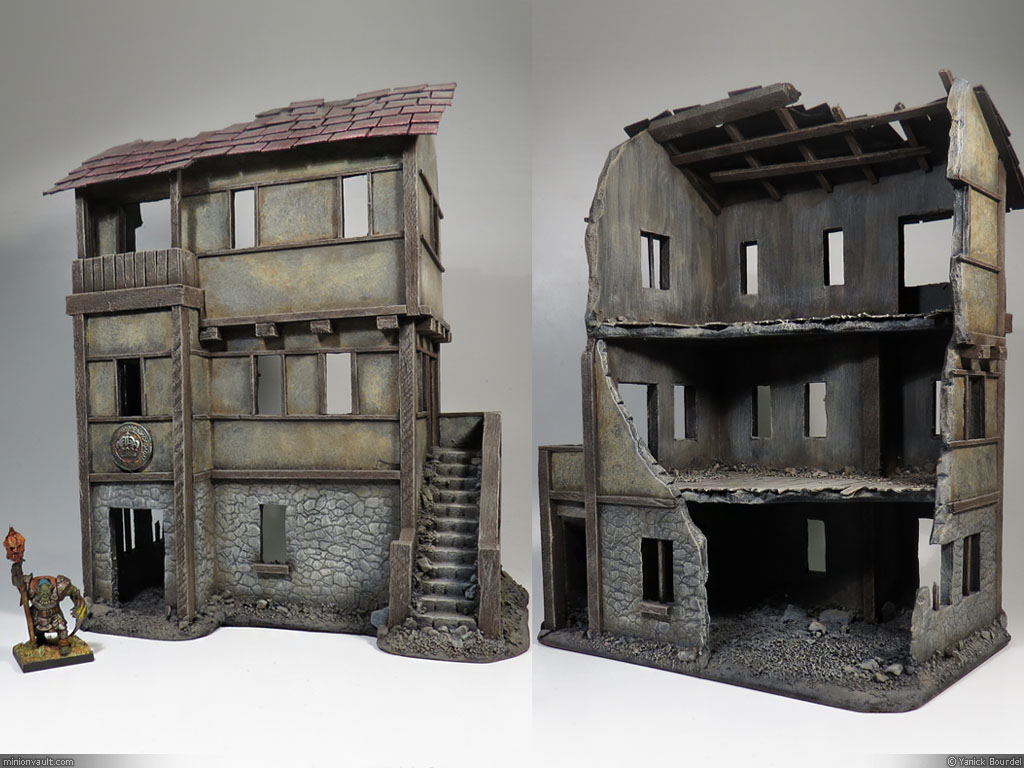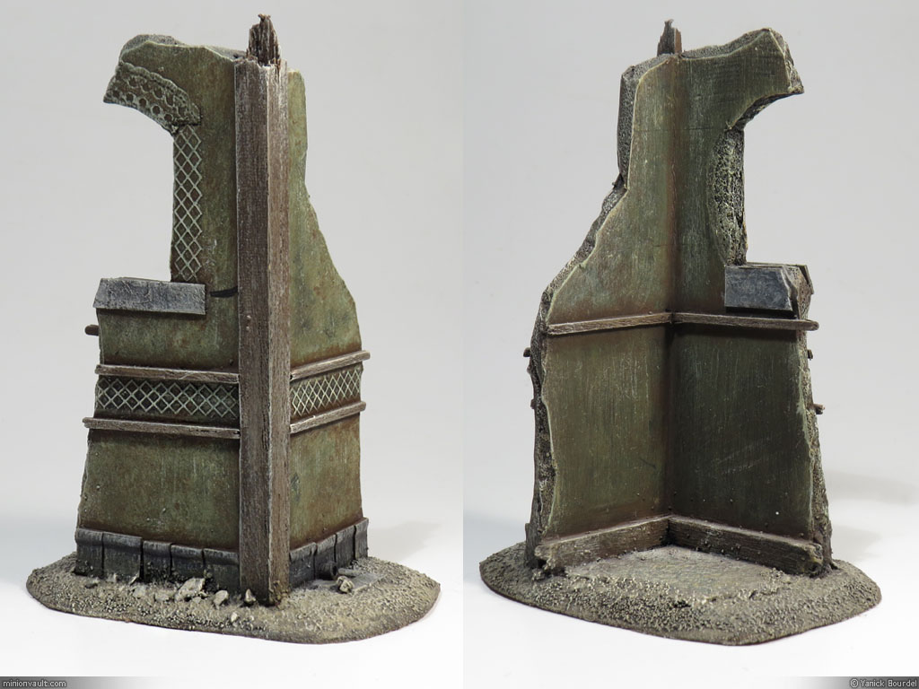 Ruined houses like these are quite easy to make (I should create a step by step post about house building). They are made mostly from foamcore boards, cardboard and wood (both pine and balsa wood).