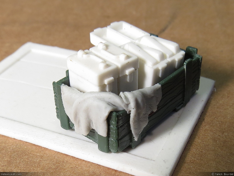 With a bit of left-over putty, I made a cloth to add some kind of focus to the box containing ammo crates.