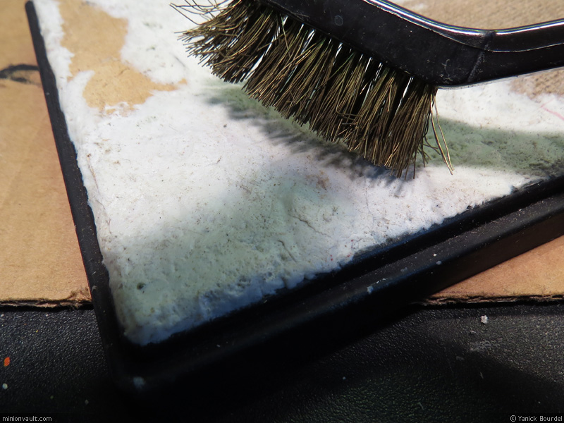 With a wire brush, I gave some texture to the areas that were too flat. In the end, there will be so much rubble and dust all over the place that I am not sure this step is needed, but…