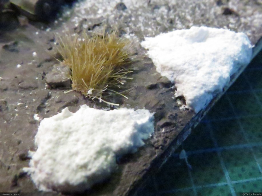 A test of Vallejo Environnement Snow with a dusting of Krycell snow on top. It looks better and can now be used to represent thicker snow in some areas.