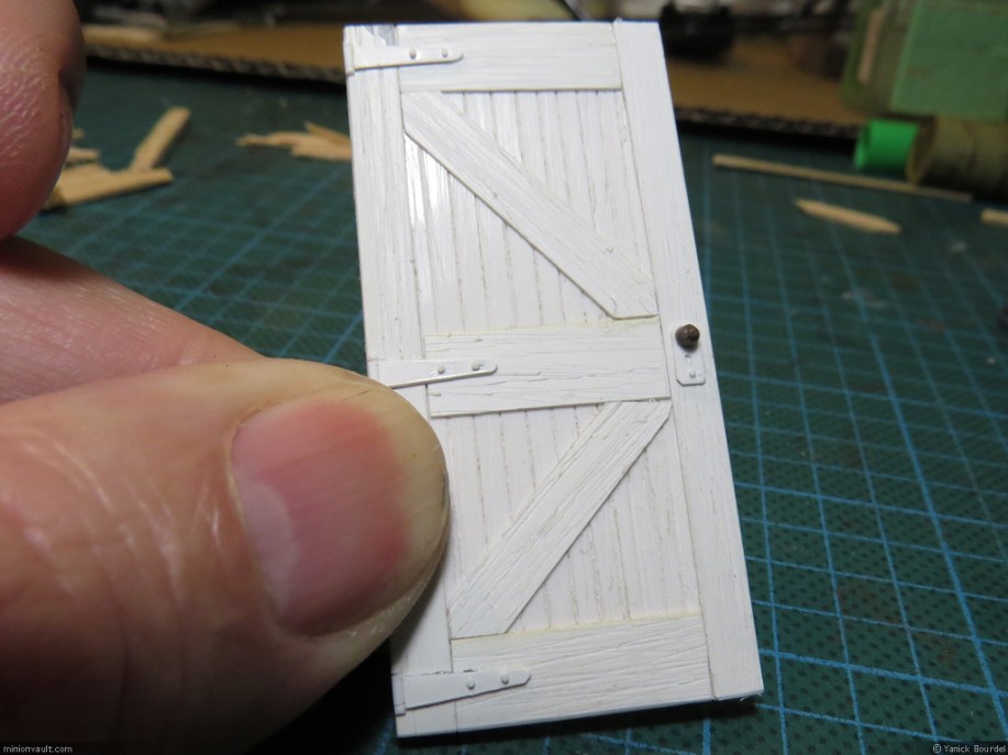 A scratch build shed door, to put on the ground in front of the tank. Putting a door in the middle of the road is a clear way to illustrate the state of destruction in a city…