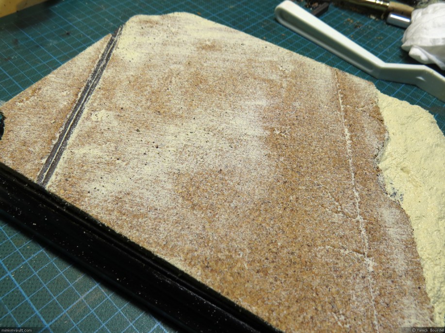 The surface of the concrete road was brushed with a mixture of glue, wood filler and fine sand. I brushed this liquid mix leaving some brush strokes to simulate concrete road texture. A strip of foam was added to represent the asphat expansion joint between the concrete slabs.